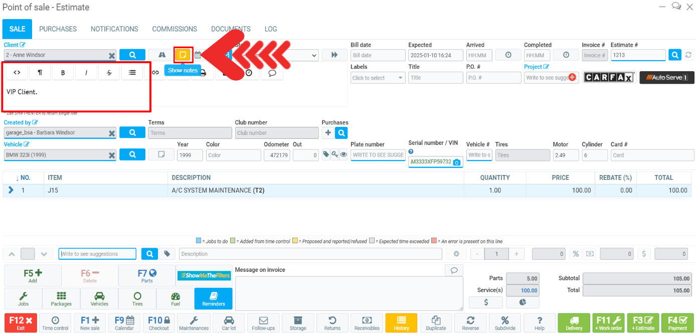 Add Notes to a Vehicle and Access Them via Point of Sale