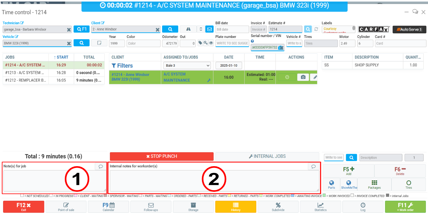 When you click on the Time Control in the Point of Sale, you have two further spaces in which to include notes:
