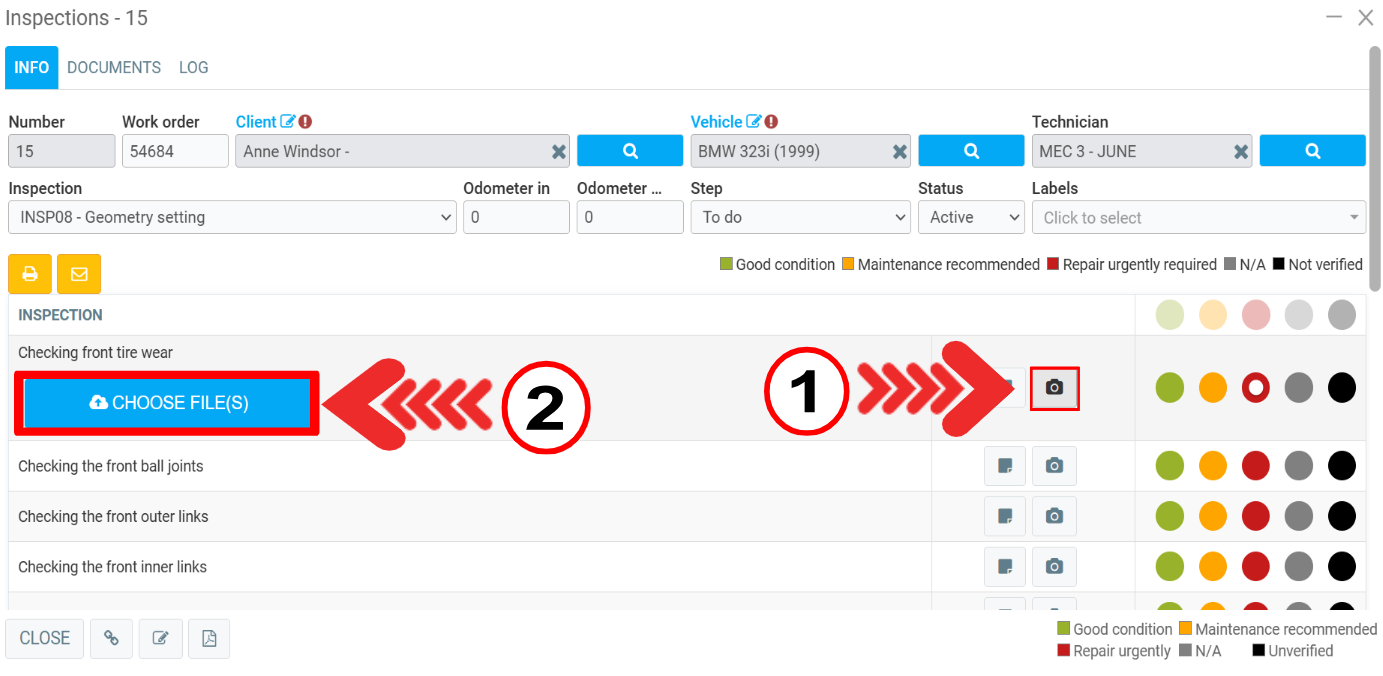 On the inspection form and for each item, select the dot corresponding to the evaluation of the aspect inspected. Here is a copy of the legend: