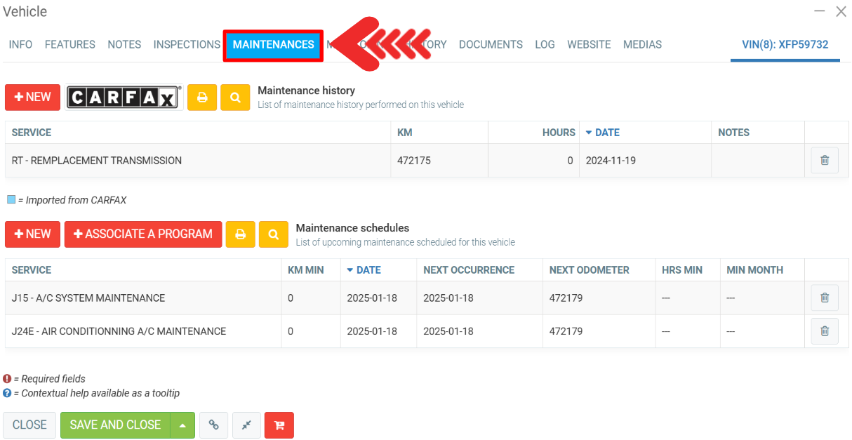 To find the inspection history for a vehicle, click on Vehicles > Vehicles > Inspections tab.