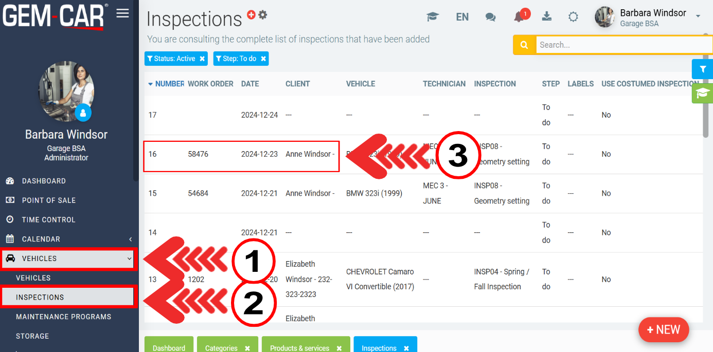 To print or sent an inspection report, click on the main left side menu > Vehicles > Inspections.