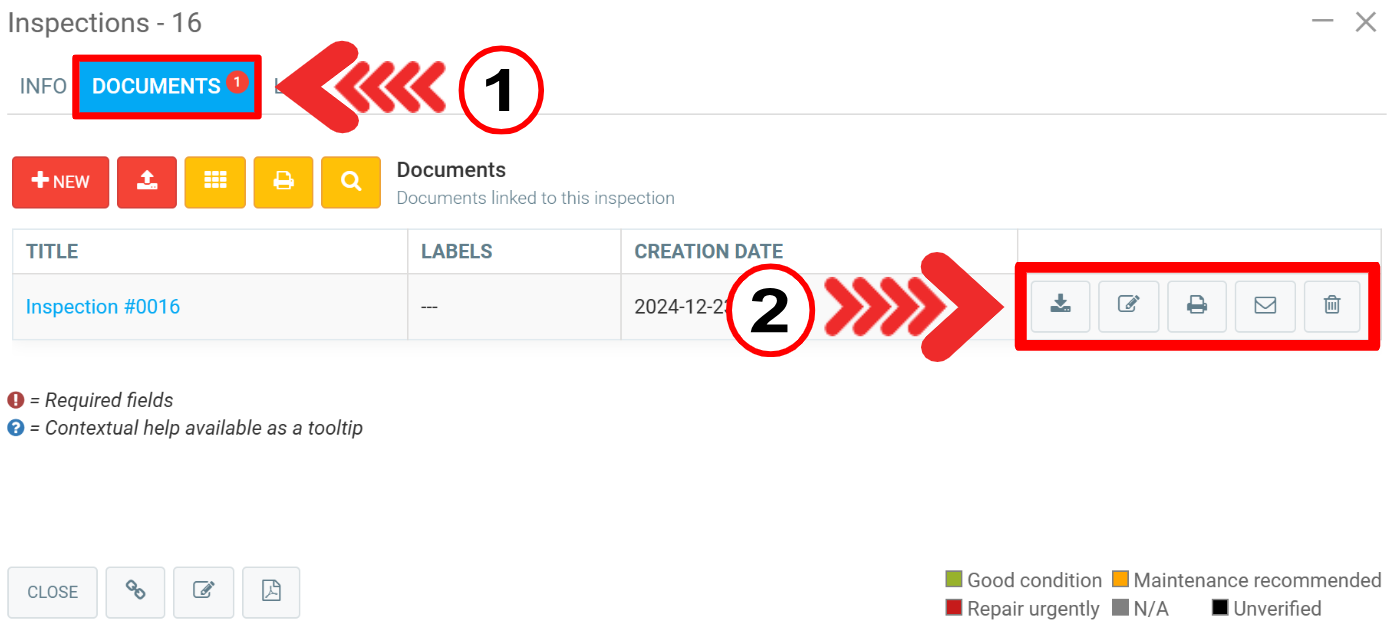 Click on Documents tab and then click on the icon associated with the action you wish to take according to the legend below: