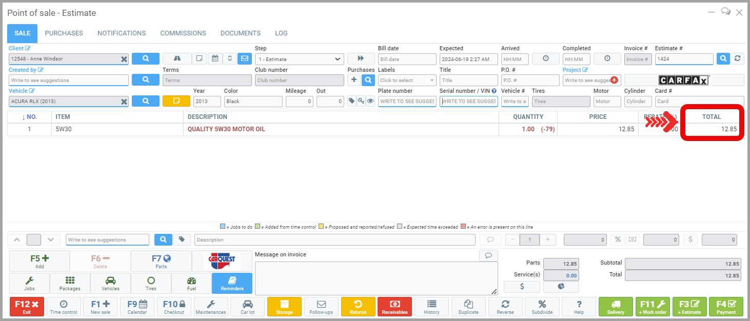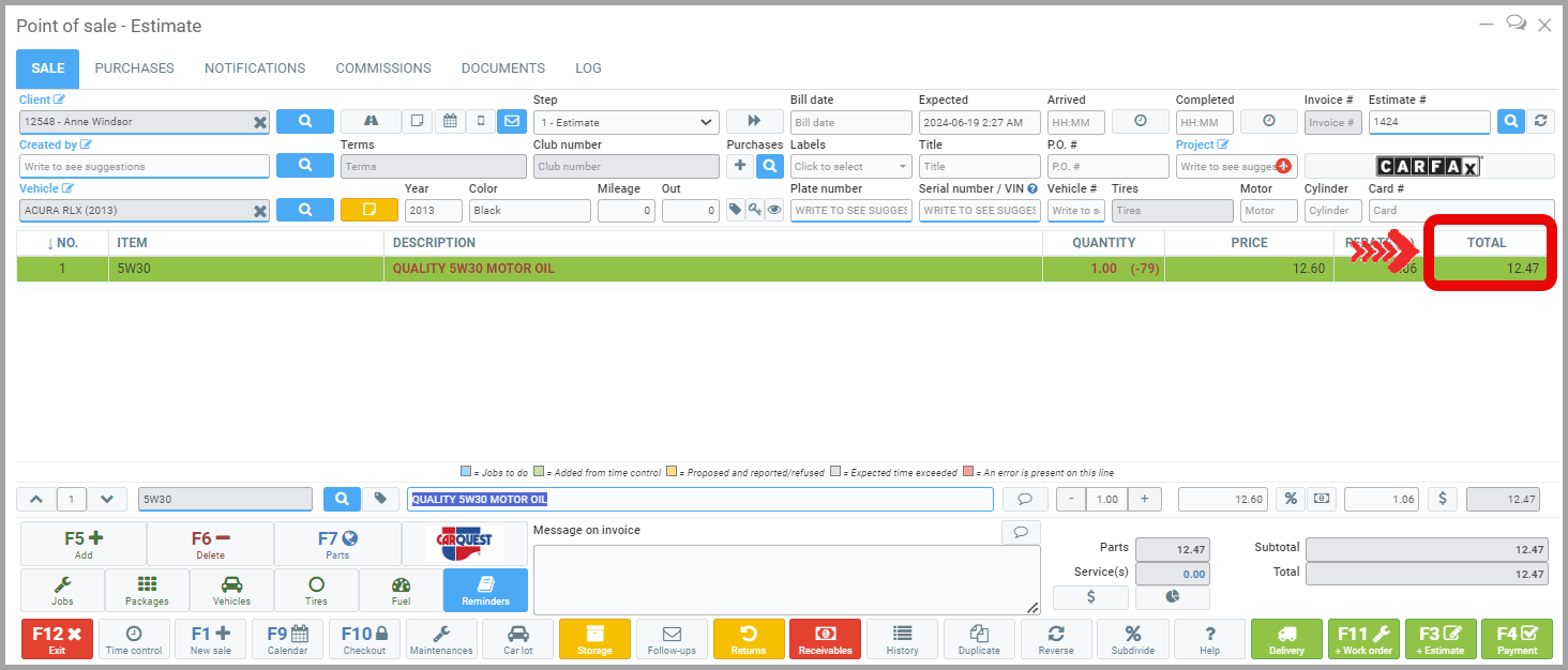 By simulating sales before and after applying the price list, you will be able to see the 3% price difference on 5w30 oil, for example. If it is normally sold for $12.85, after applying the 3% discount, it will be sold for $12.47.