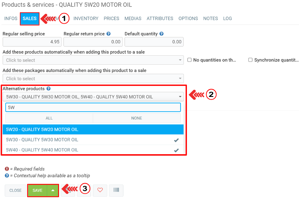 In the next window, on the Sales tab, look for the Alternative products option and select the ones you want to be an option for the product.
