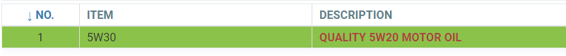 The product code will change and the description will remain that of the originally selected product, but the color will turn red, indicating that there has been a change.