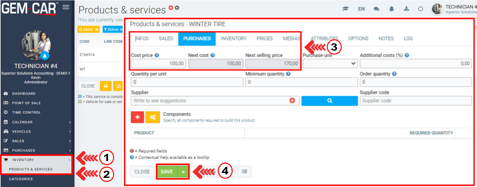 Note: the system will calculate the next cost, but you must enter the cost price.
