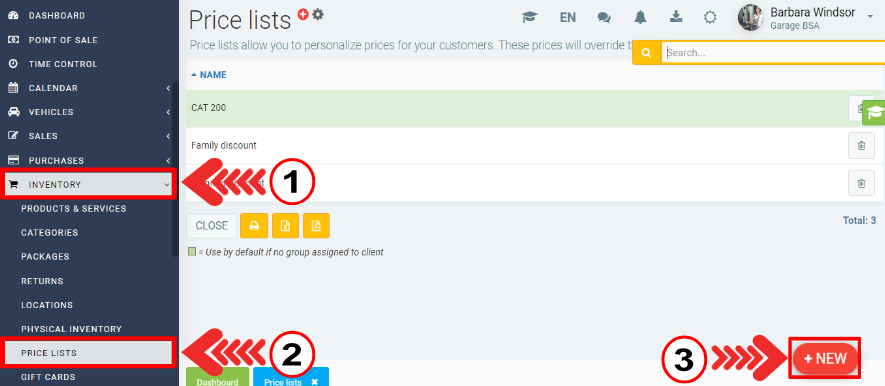 To activate the progressive matrix, go to Inventory > Price list > +New.