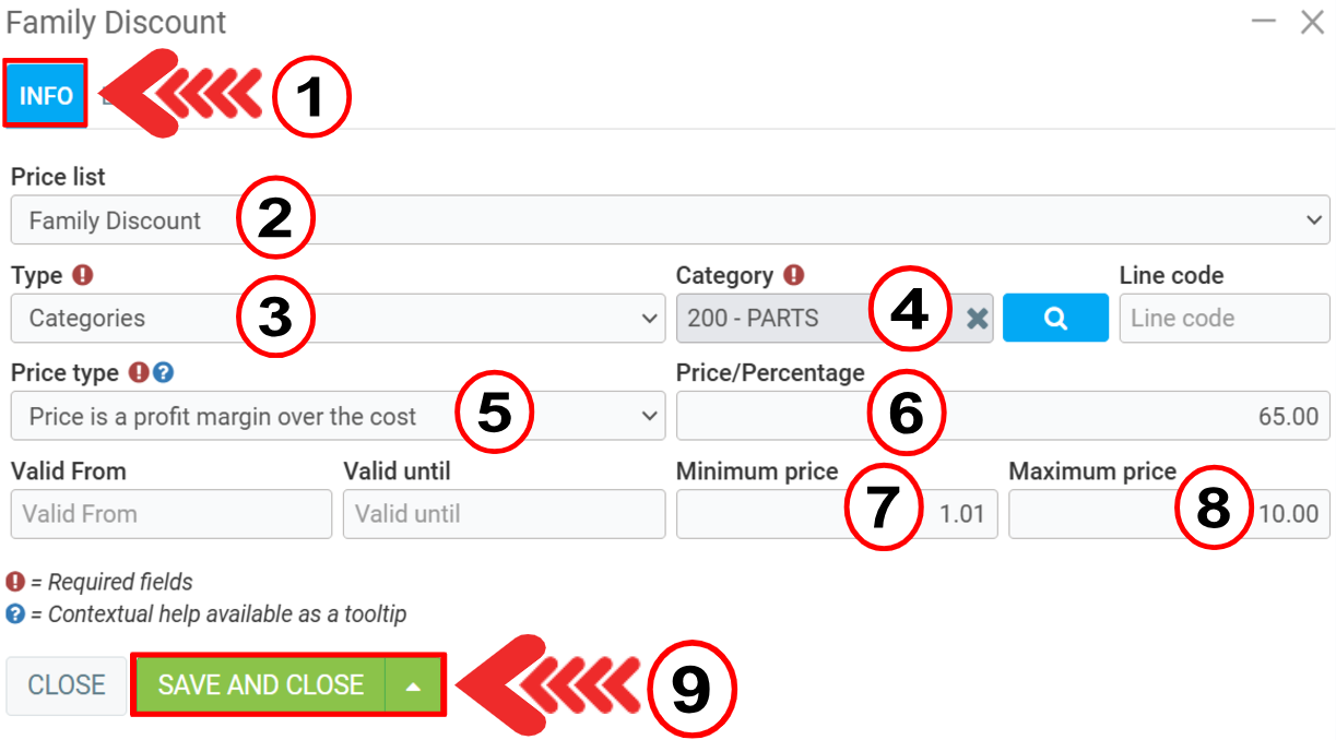 - We look at the bracket the cost is in: we keep the margin in memory A (Bracket from 10.01 to 20.00 at 40% margin).