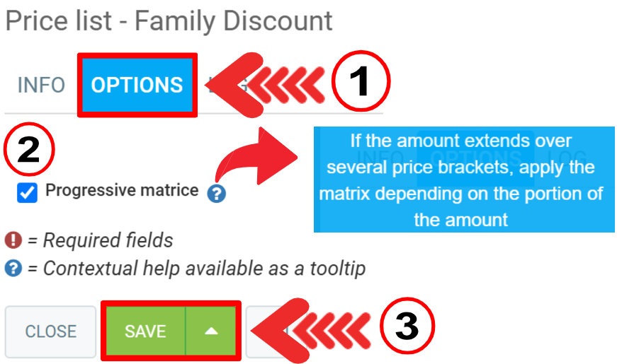When you return to the previous page, click on Options, check the “progressive matrice” option. Then, click on Save.