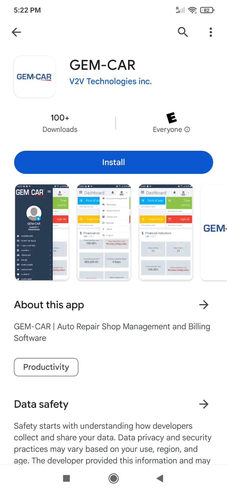 Search for GEM-CAR app, select it, click on the blue button "Install".