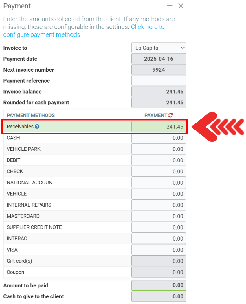 For the Payment Method To Be Received, enter the amount to be paid and click on Send.