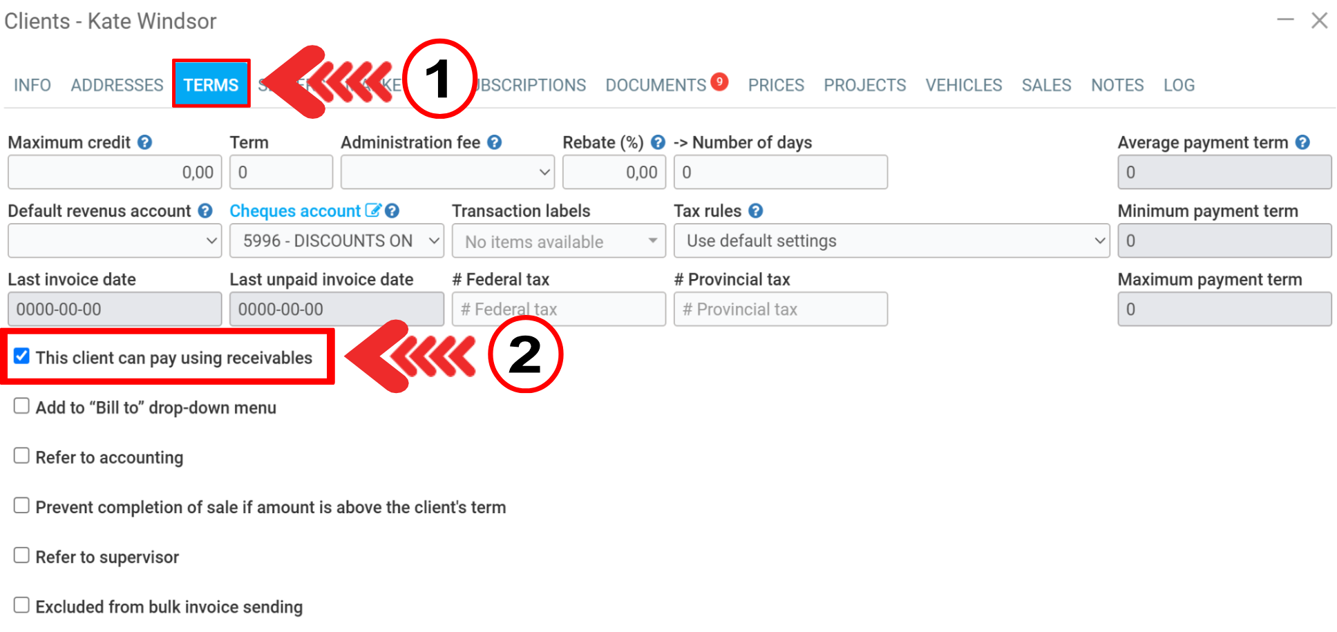 Note: If the Send button is not clickable at this stage, it is very likely that the client you are sending the invoice to is not authorized to pay by receivables (under the Terms tab in their Client file). See Creating a New Client for more details.