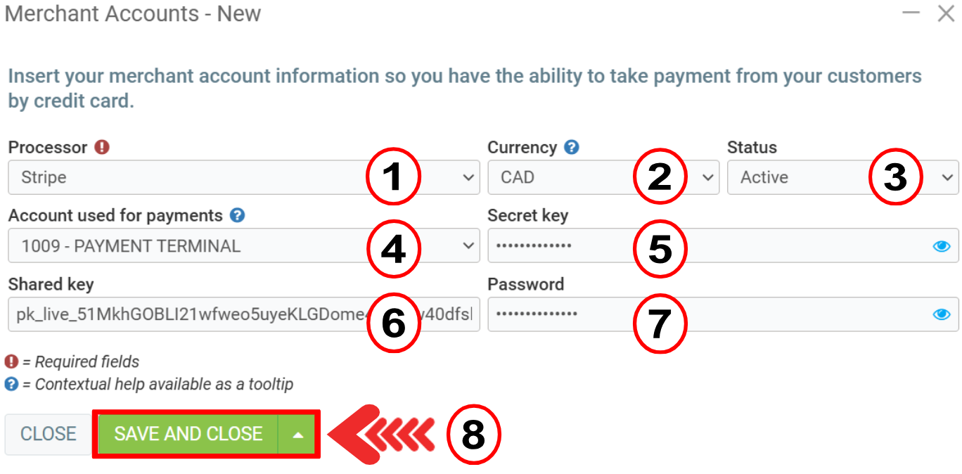 All you have to do is to confirm with the client what Account used for payments he will use, and click on Save and Close.