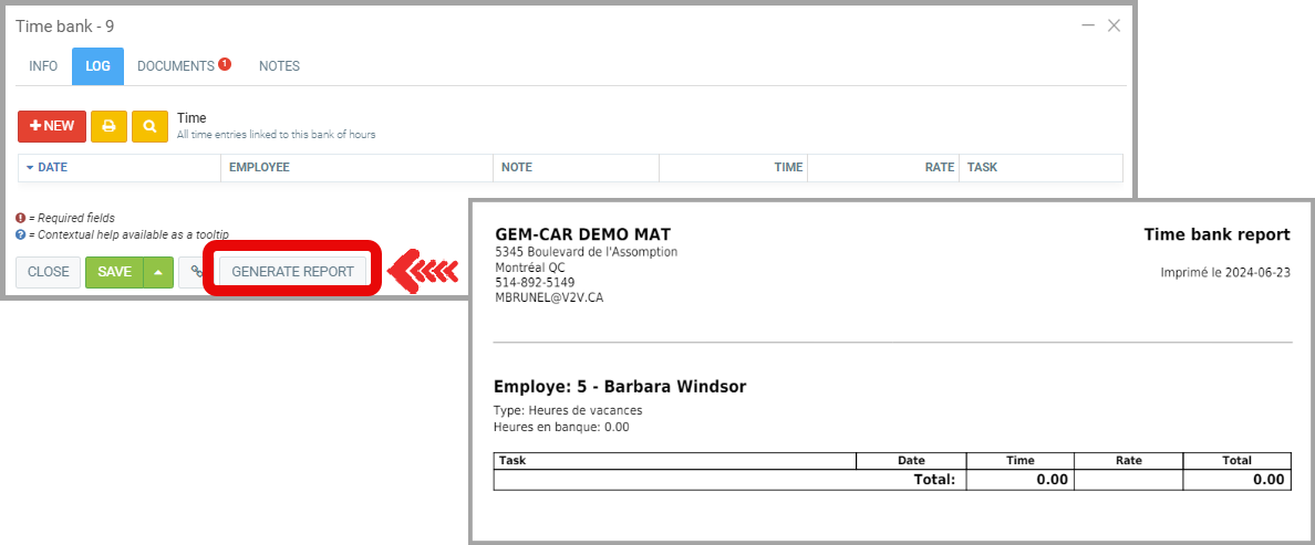 Note that you can generate the Time Bank Report of the hour bank at any time.