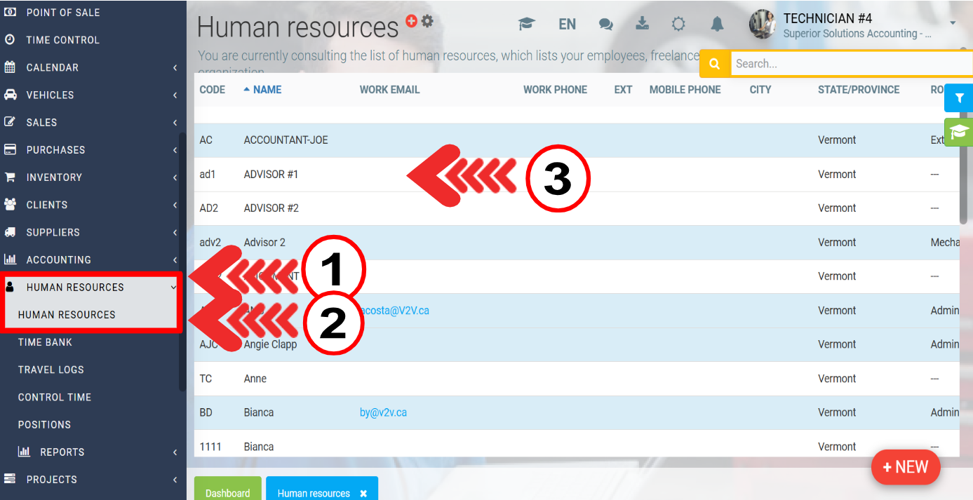 In the payment configuration, go to Human Resources > Human Resources and select the desired file.