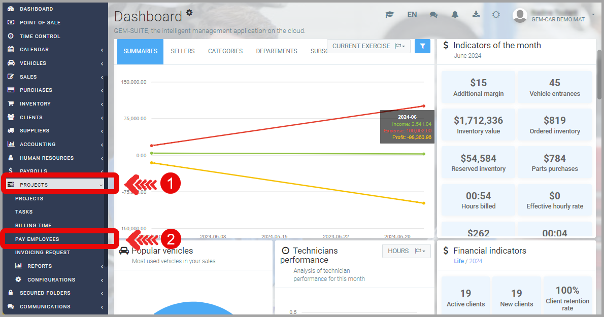 To determine the amount to pay each employee based on their worked hours:- From the main menu, click on Projects > Pay Employees.