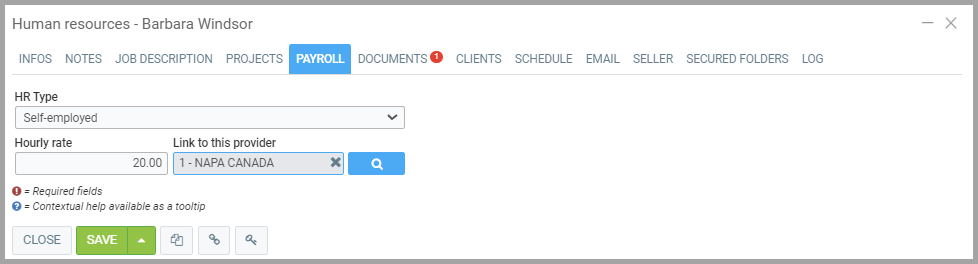 For a human resource working for you as an Employee, payment for their services will appear on your payroll list, and their complete file must be filled out with all the necessary data by your payroll department staff.