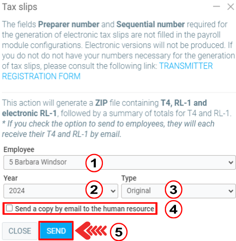 In the dialog box entitled "Tax slips", write the following information: