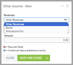 To add the income, select the income from the drop-down menu. The incomes displayed are those created following the steps in point 1. Enter the amount you want to add for each period.