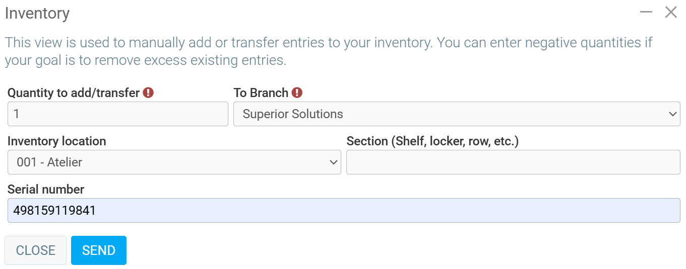 - Quantity to add/transfer