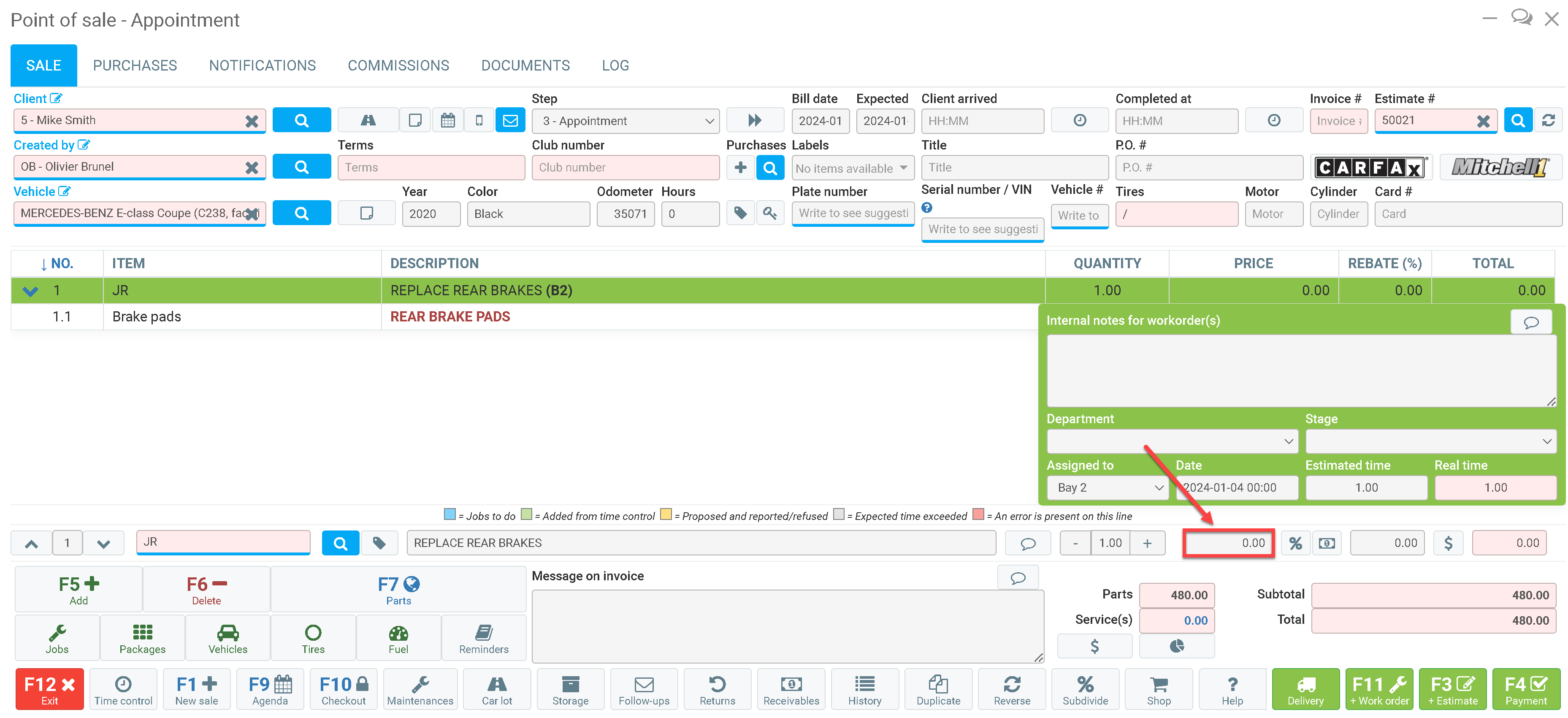 From the Point of Sale, it is important to be able to quickly modify prices, simply click once on the job and click on the price field.