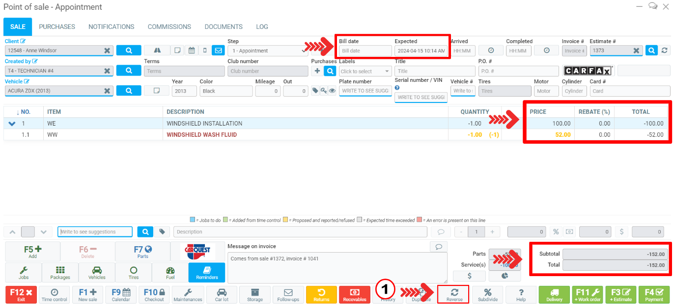 GEM-CAR will immediately duplicate the original sale, but with negative quantities.