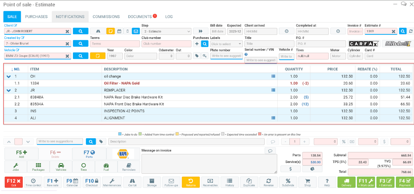 Your jobs should now appear in your estimate with a light blue color like this one.