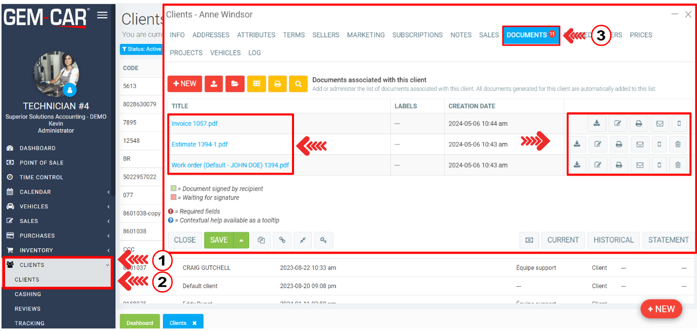 The same documents can also be accessed from the customer's file.