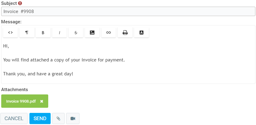 After creating the estimate, work order or invoice, another window will open for you to send the PDF to the client.