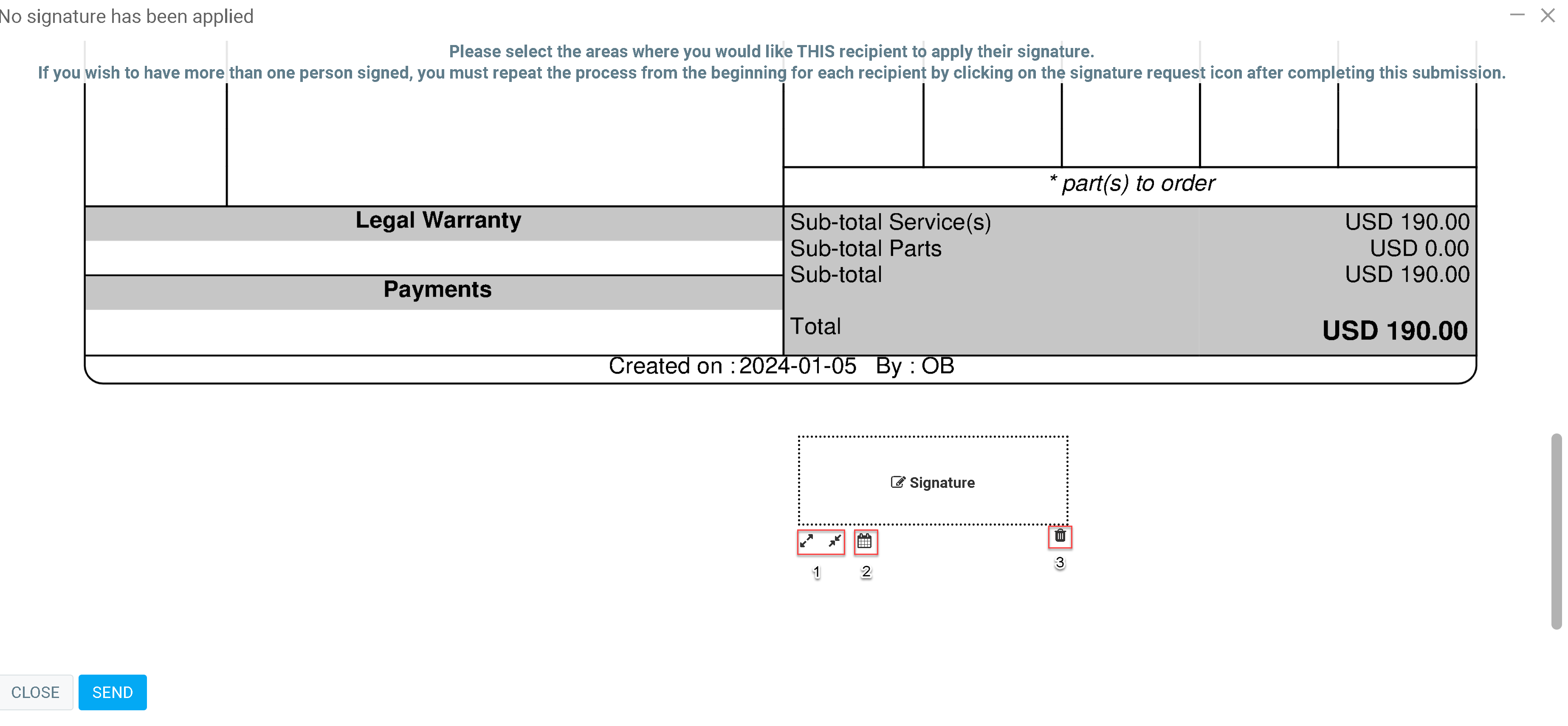 - It changes the size of the signature box, to make the signature larger, press on the left icon and to make it smaller on the right icon.