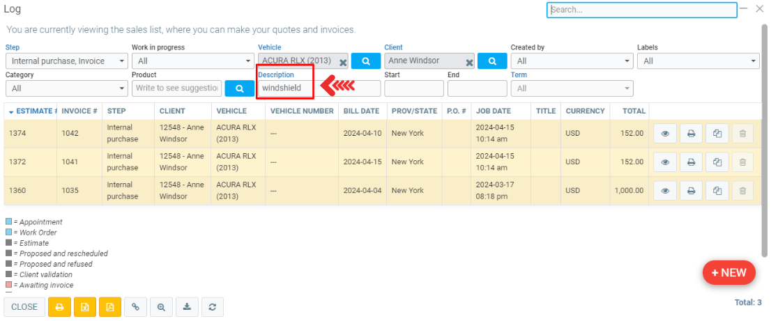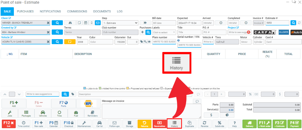 From the Point of sale, you can search for a product or service based on its description in the History.