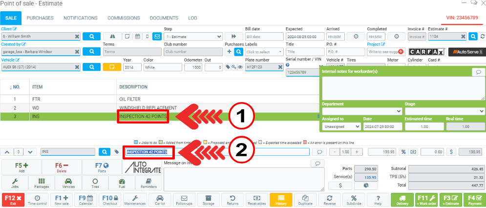 For instance, you would like to specify what kind of inspection the client wishes: the 42 points inspection.