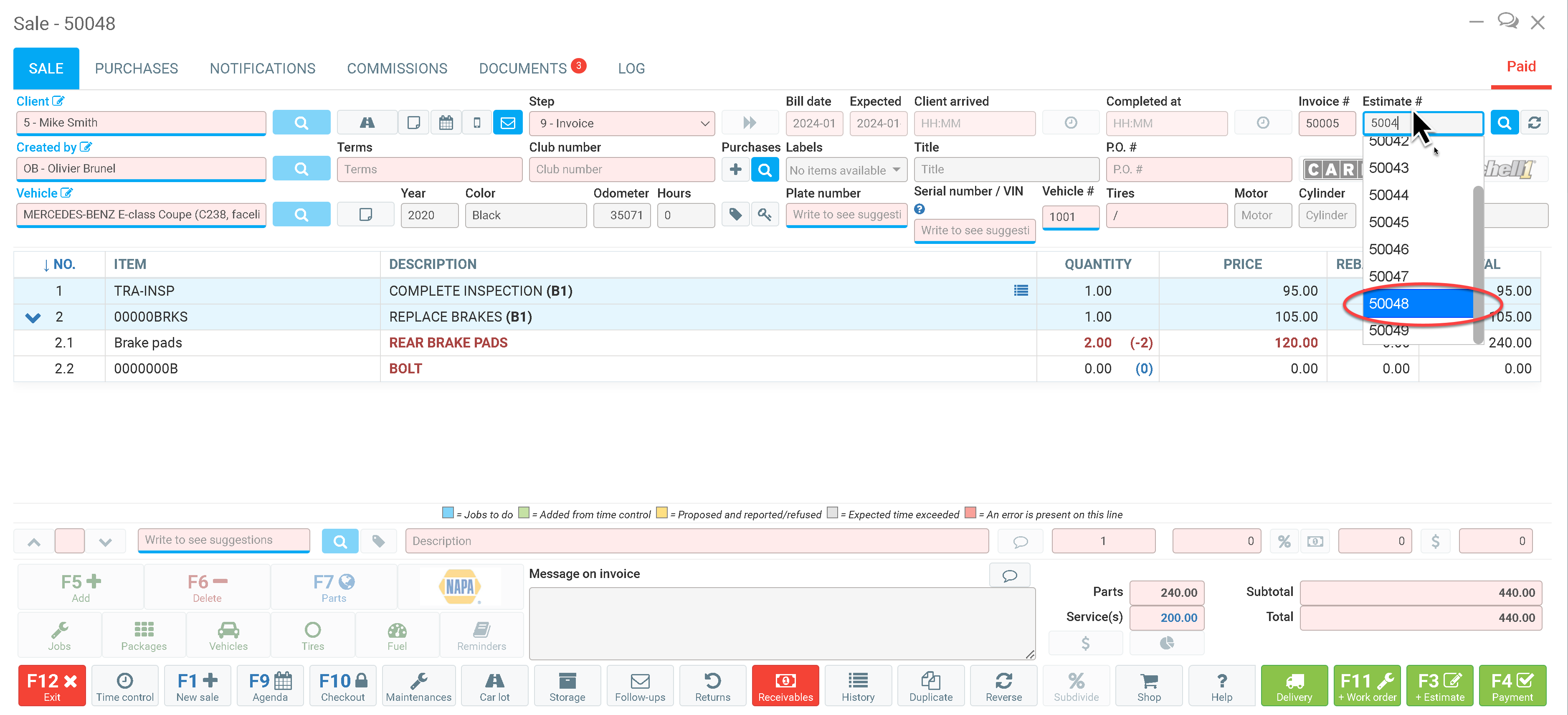 Once the estimate has been selected, GEM-CAR will bring you into the customer's estimate.