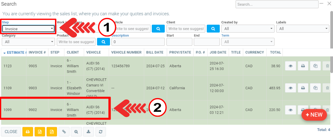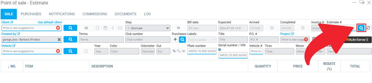 At the Point of Sale, click on the magnifying glass at top right, next to Estimate#.