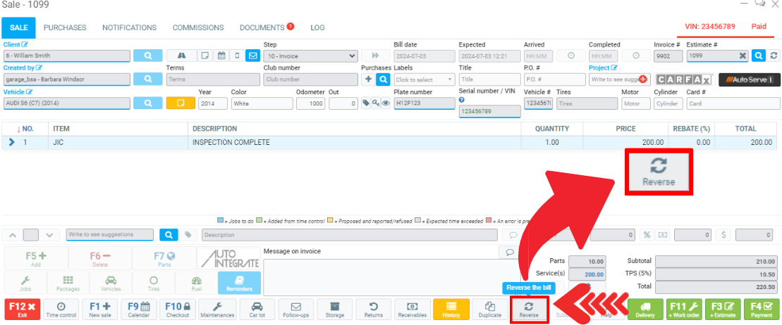 We present here the first option to reverse an invoice. You can access the second possibility here: Reverse an Invoice - Sales Tab.