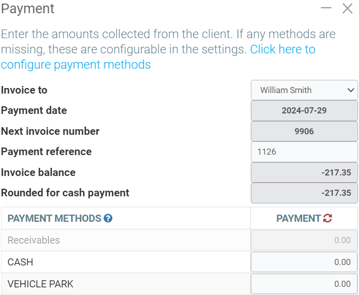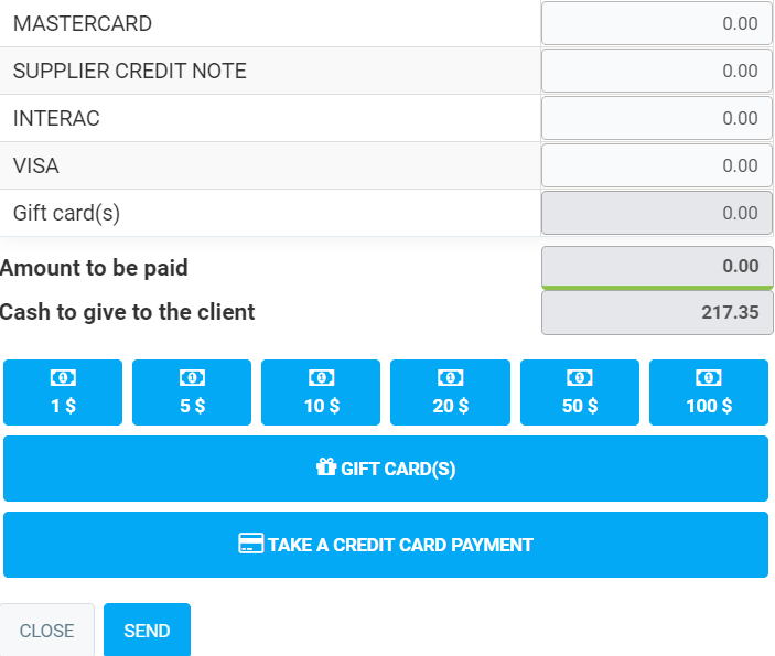 Click on Payment at the bottom right of the screen. Check the amounts and click on Send.
