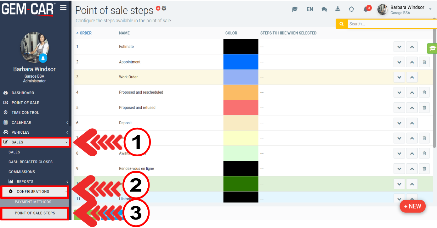 In the Point of Sale, it is now possible to change the color code, simply select the Sales tab in the left menu, and click on Configurations > Point of Sale steps.