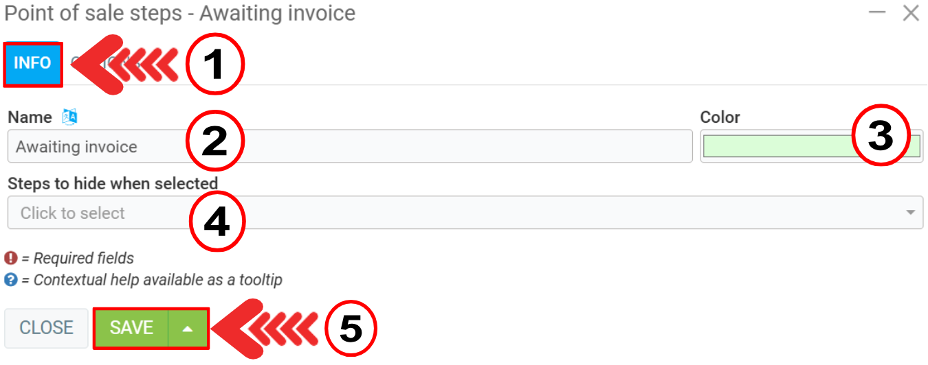 To create new stages, click + New. In the Info tab, enter the following information: