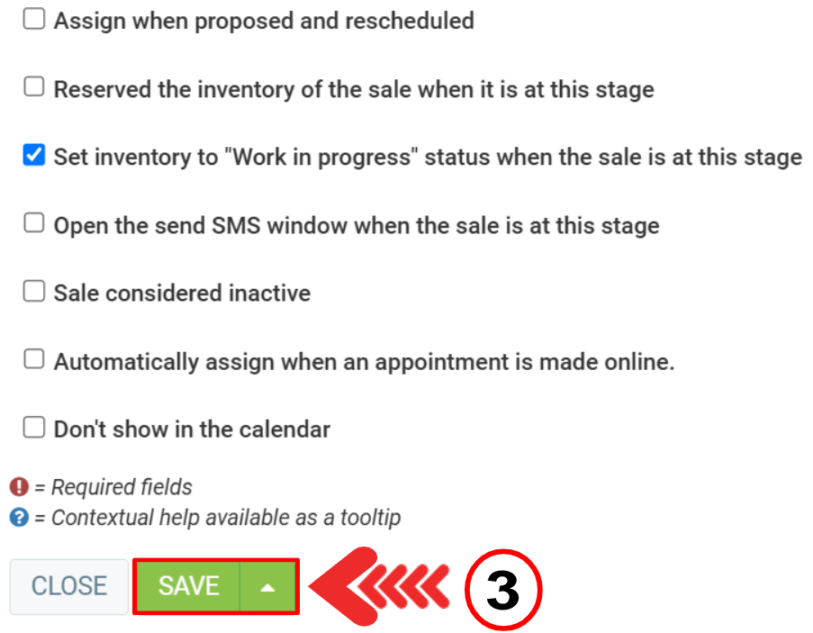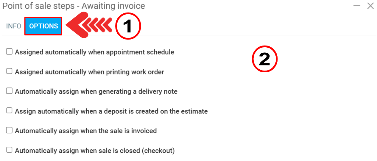 In the Options tab, you can check the options that suit your workshop.