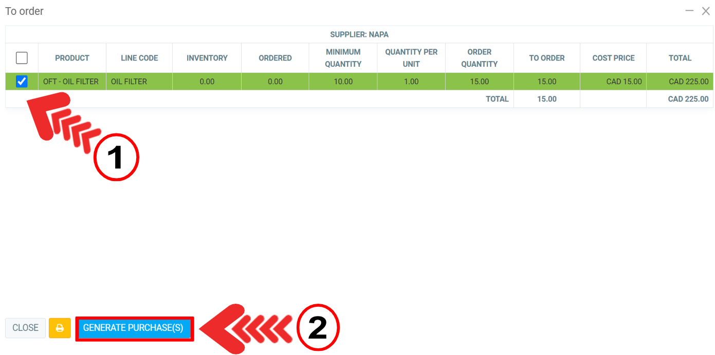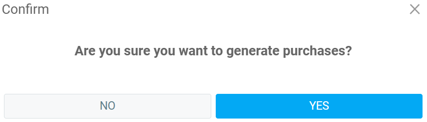 A confirmation window appears with the following message: “Are you sure you want to generate purchases?" Click on Yes.