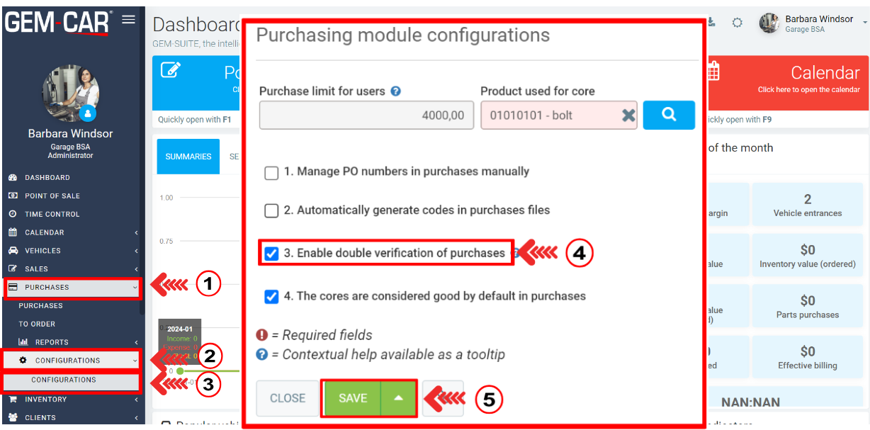 When this option is activated, the person who creates the purchase cannot finalize it until a person with access to the purchase status has validated it.