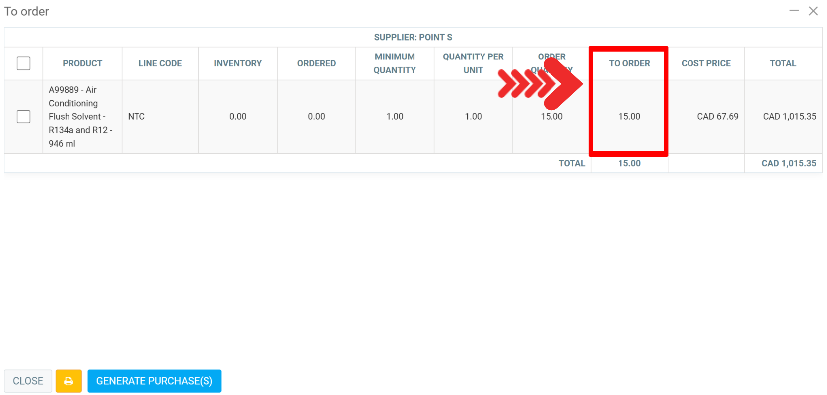 In the To order window, you will see the column To order with the quantity now by default.