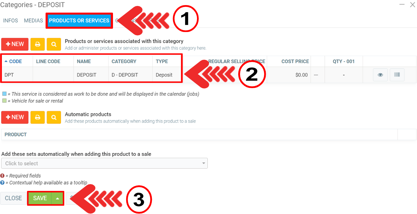 Once you've created the depot product and associated it with this category, it appears in the Products or Services tab.