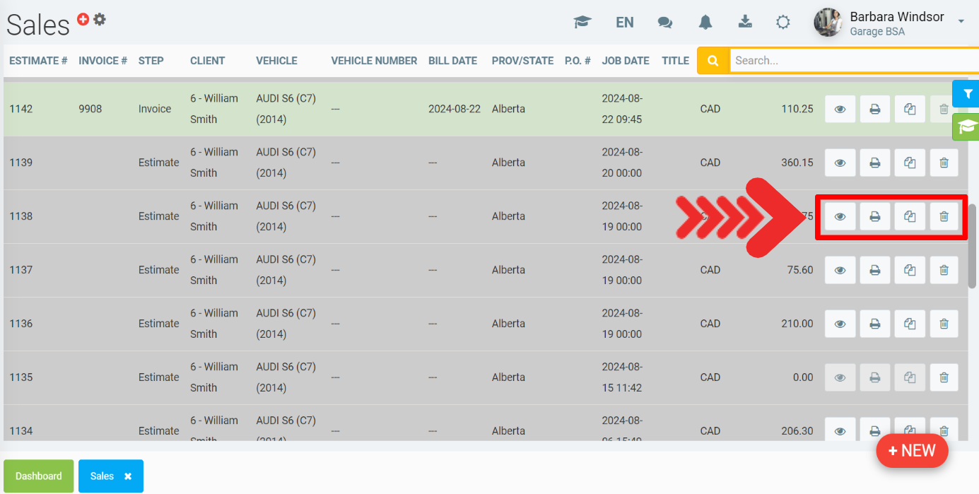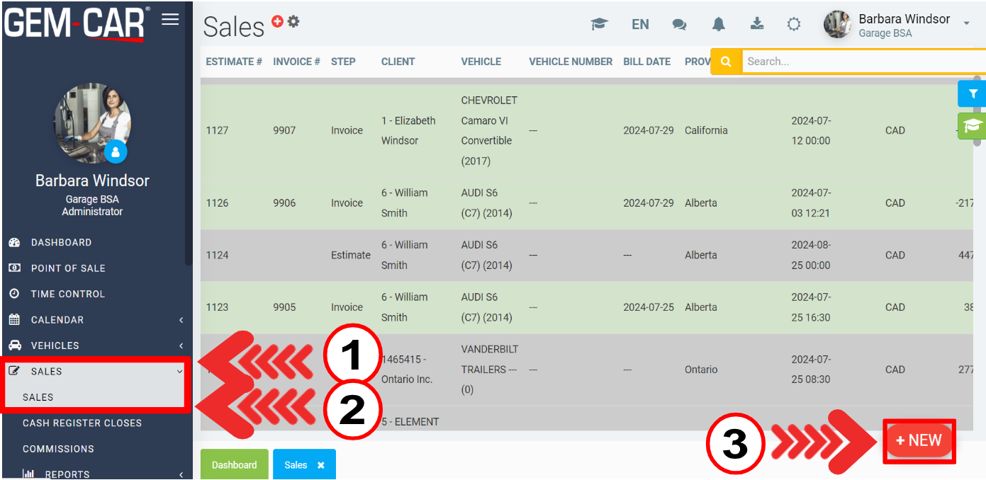 If you wish to create a new sale, click on the red +New button in the right corner of the page.