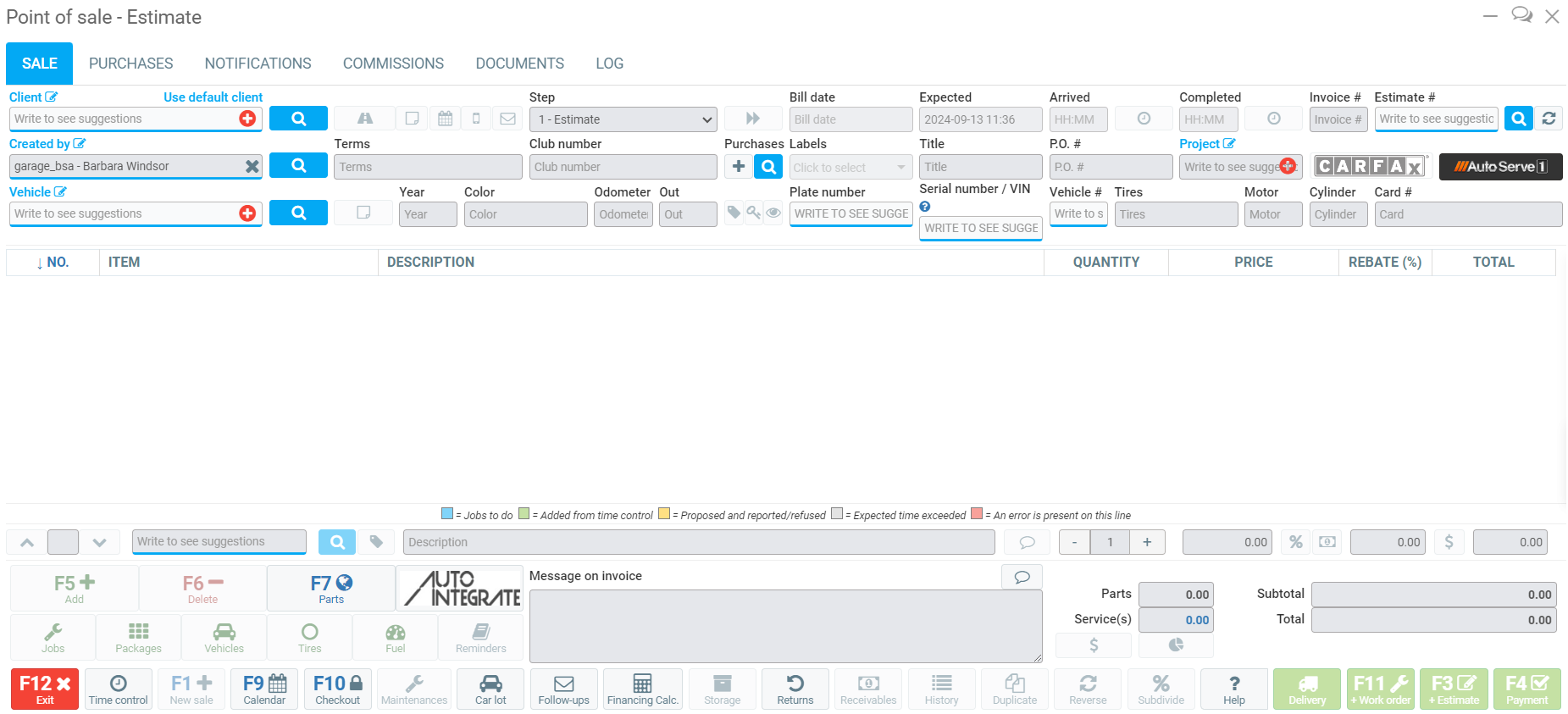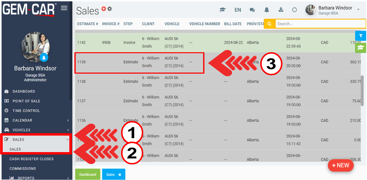 If you wish to continue a sale that has not yet been finalized, look for the estimate in the top right-hand corner. For more information, see Find an estimate with the estimate number.