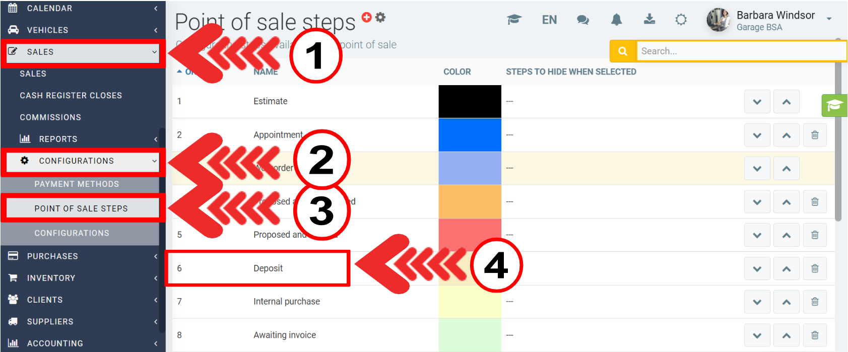 Click on the Sales > Configurations > Point of Sale Steps in your menu.