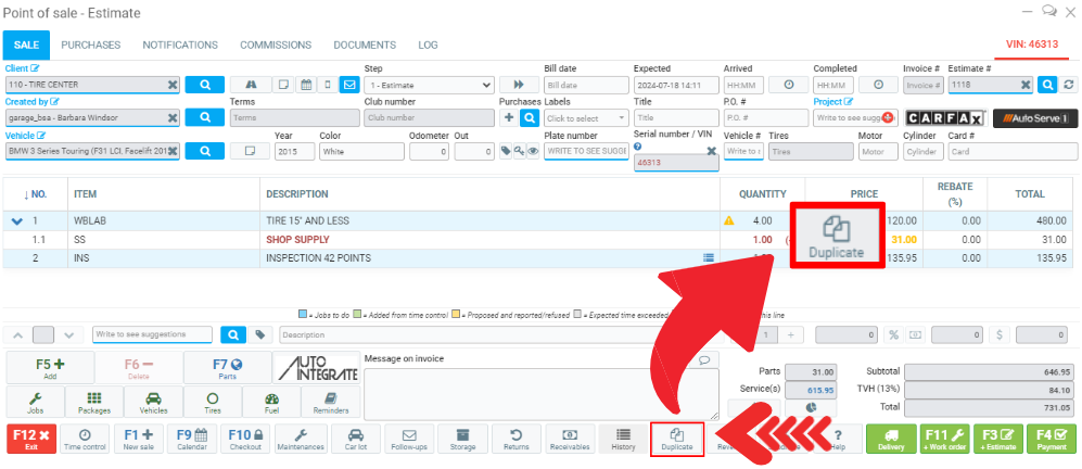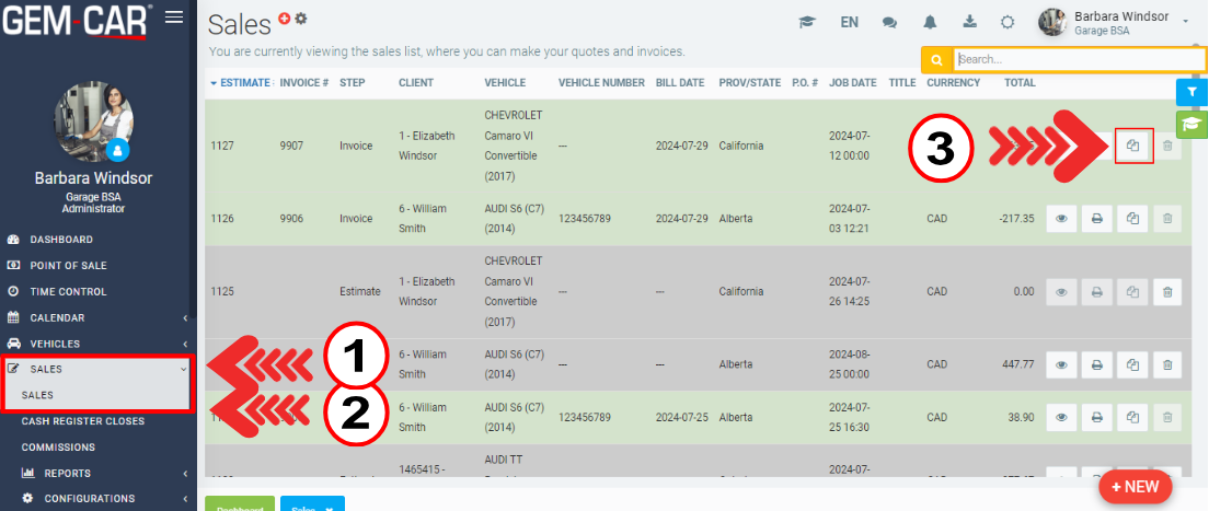 In GEM-CAR, there are two ways to duplicate a sale: in the Sales tab and in the Point of sale.