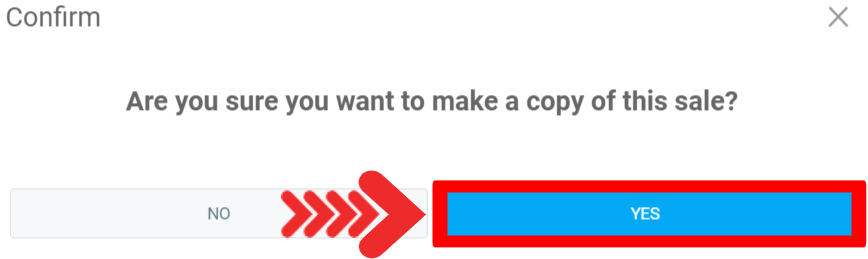 A confirmation window opens with the following message: ''Are you sure you want to make a copy of this sale?''. Click Yes.