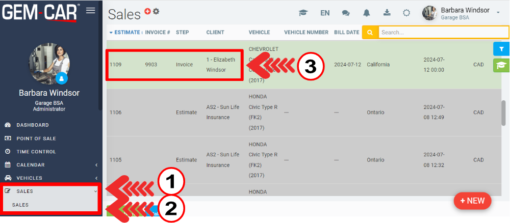 In the menu on the left, click on Sales > Sales to display the Sales list.
