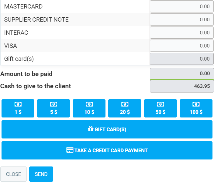 Click on Payment at the bottom right of the screen. Check the amounts and click on Send.